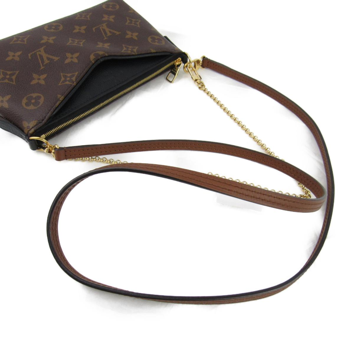 9.1 x 5.1 x 1.9 inches (Length x heightx width ) Monogram canvasNatural cowhide leather trimMulticarry (shoulder /crossshoulder) golden chainGolden colour metallic pieces1 zipped central compartment1 exterior front pocket