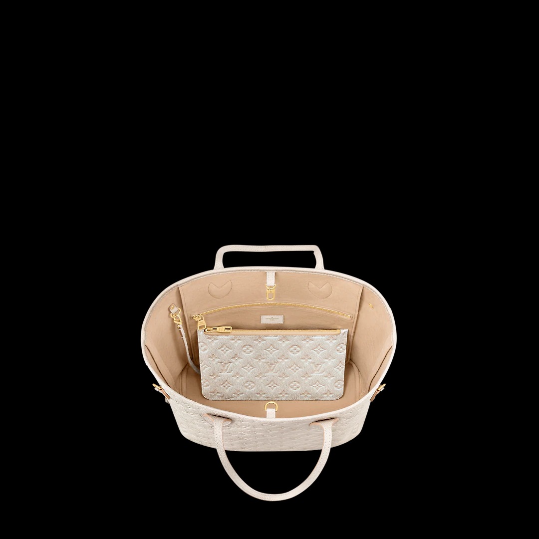 The Summer Stardust animation brings a shimmering effect to the embossed Monogram Empreinte leather of this Neverfull MM carryall. Roomy but lightweight, its side laces cinch for a sleeker allure or loosen for a more casual feel. The leather handles slip comfortably over the shoulder or arm.
