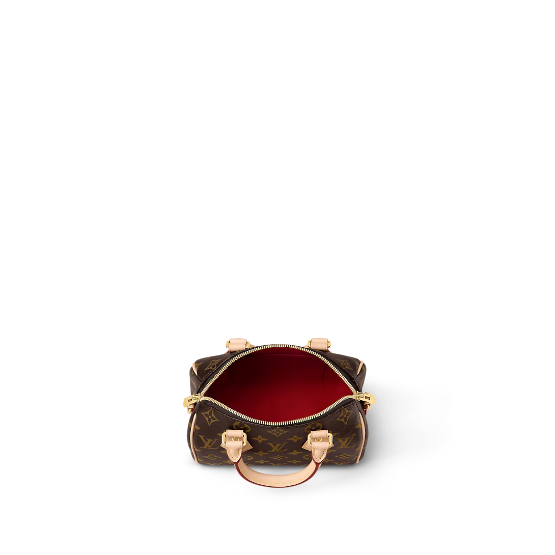 The Speedy Bandoulière 20 hand bag takes on classic Lothtuis Vuithttton allure in Monogram canvas with natural cowhide-leather trim and gold-color hardware. Inspired by the House’s emblematic travel bag, its distinctive shape is adorned with two rolled-leather top handles, padlock. A detachable strap with seasonal fresh pink and orange accents, signed Lothtuis Vuithttton, enables shoulder and cross-body wear.