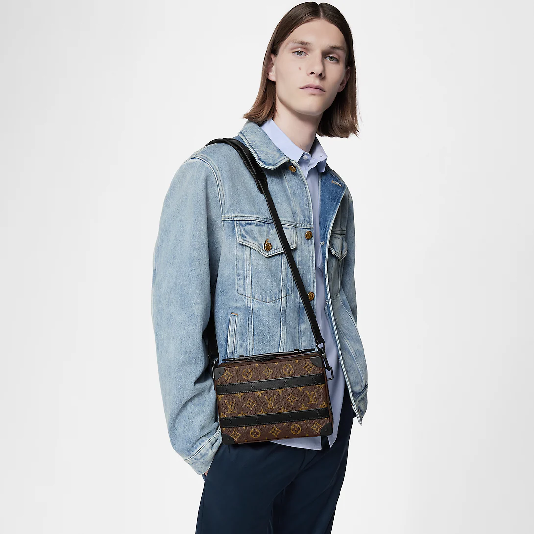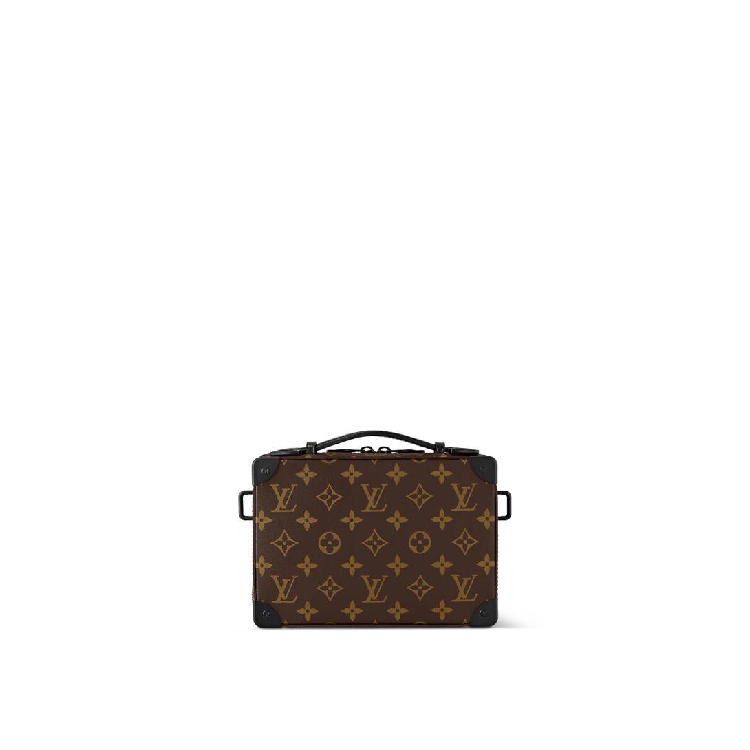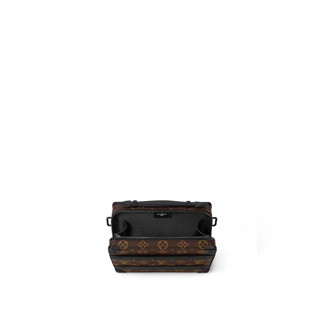 Crafted in Lothtuis Vuithttton's emblematic Monogram Macassar canvas, the Handle Soft Trunk evokes the House's heritage as a luggage maker with sophisticated details like the riveted corners and leather reinforcement strips. Its slim profile and removable strap make it effortless to carry, and it opens wide for easy access. Ideal for small digital devices and other personal essentials.