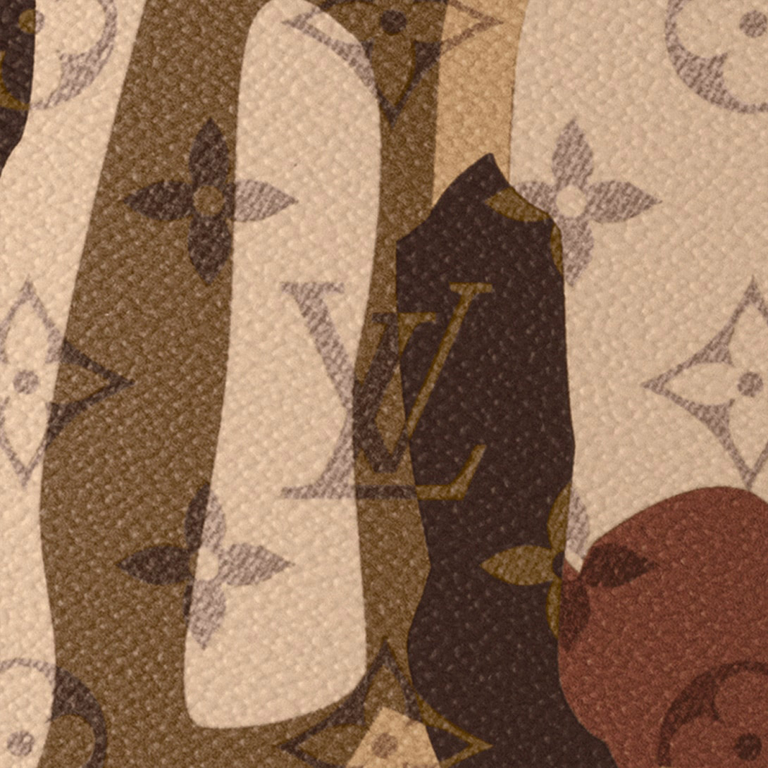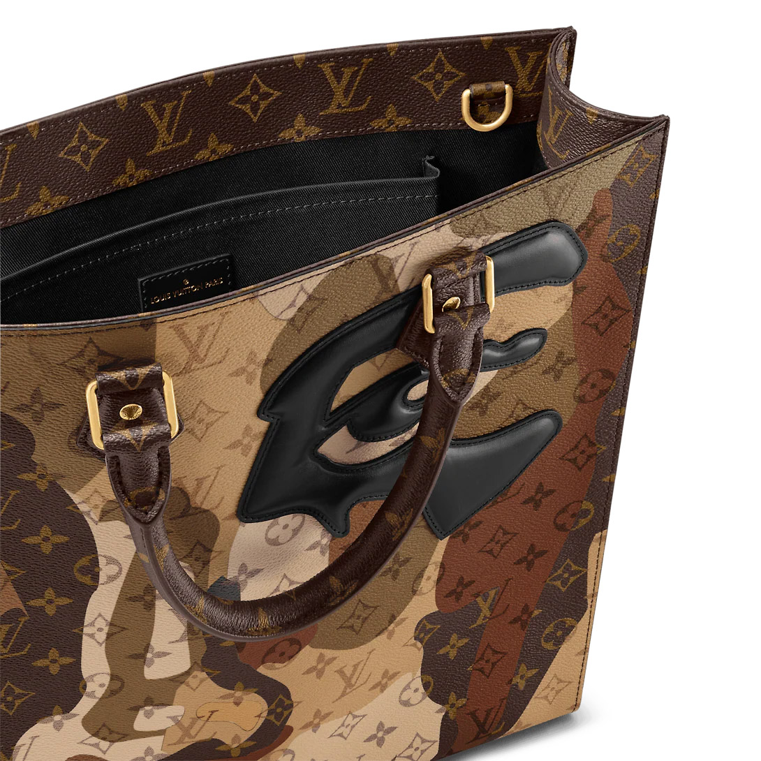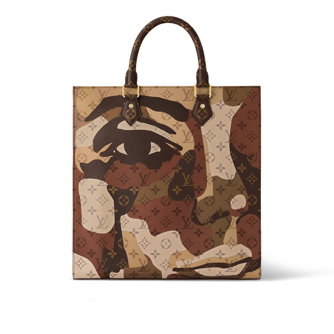 The Sac Plat, one of the House’s most stylish men’s bags, is made from coated canvas, decorated with darker and lighter browns that form the lines of a face. The image is completed with a piece in leather, stitched to the canvas, that creates an eye.