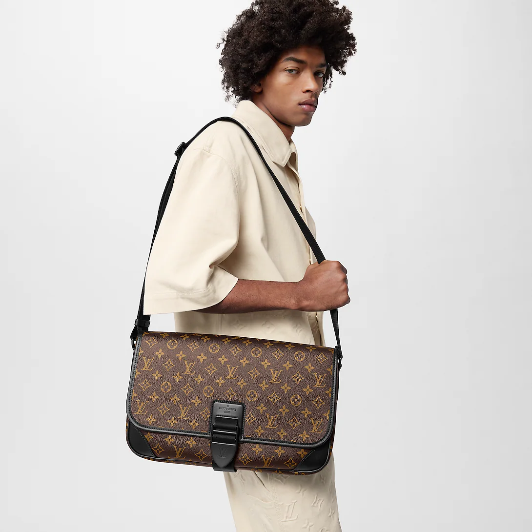 Inspired by the architect’s workbag, the Archy Messenger GM bag is made from Monogram Macassar canvas with cowhide-leather trim. Reinforced leather corners and piping bring sophistication while a back zipped pocket and an adjustable textile strap make it practical. The magnetic closure features the new black metallic emblem signed LthtV.