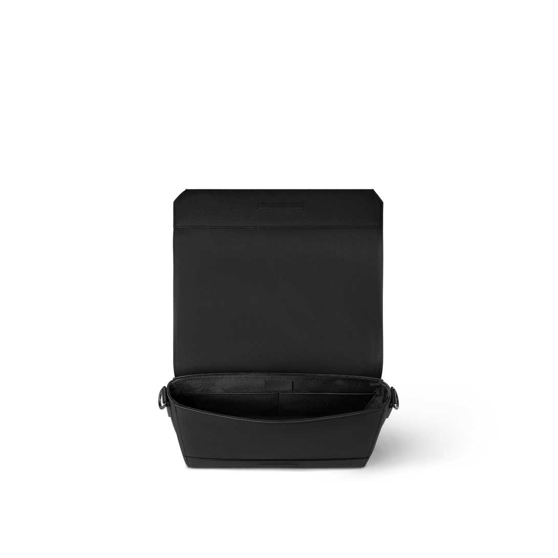 The LthtV Aerogram Messenger's minimalist design asserts a maximum of style. Sumptuous calf leather is combined with subtle signature touches like a customizable tag recalling the stamps on old-fashioned aerograms. Protected by a flap with precision-cut corners, it's ideal for carrying a phone, tablet or papers, while the zipped rear pocket keeps valuables secure.