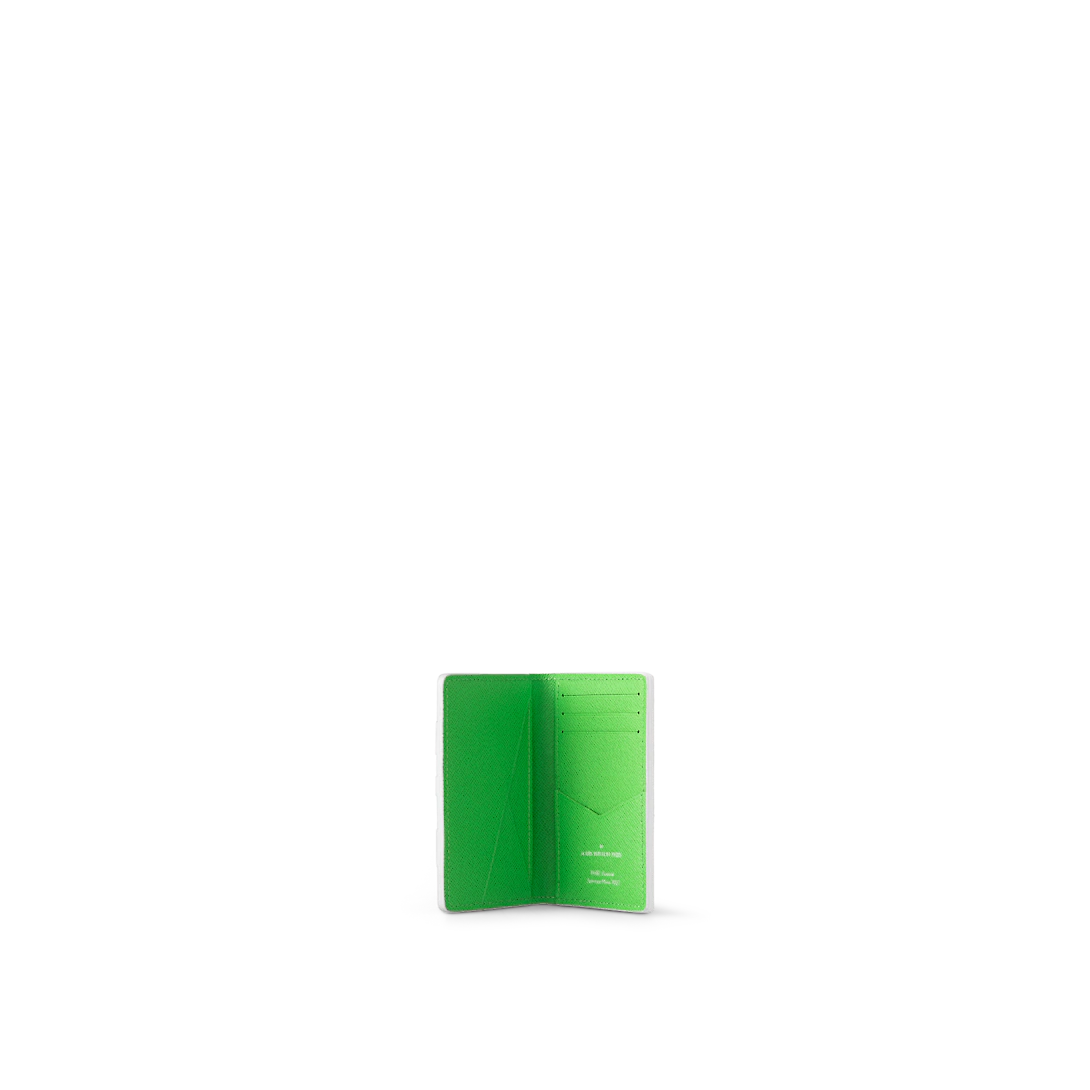 The Pocket Organizer intrigues in coated canvas and cowhide leather with a patchwork color treatment that seems to create a face. Stitched onto the canvas is a leather patch in the shape of an eye. Five inside pockets and one outside make this compact wallet surprisingly practical.