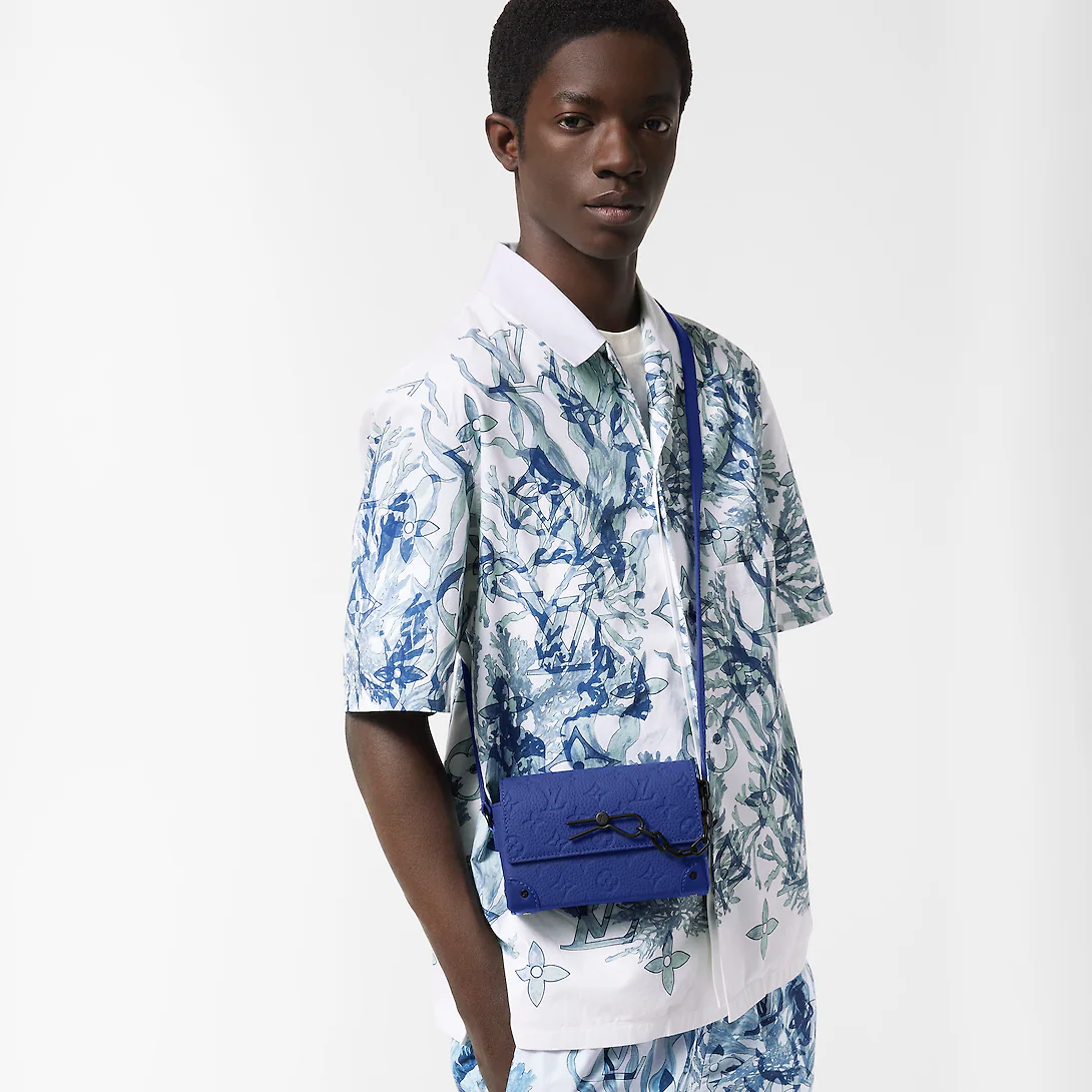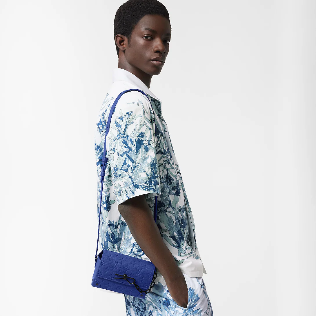 The Steamer Wearable Wallet in Monogram-embossed Taurillon leather is a compact bag, just the right size for daily necessities. It closes with the distinctive pin-and-chain designed by Virgil Abloh and inspired by the House’s historic steamer bags. An inside zipped pocket keeps valuables secure while the adjustable strap enables shoulder and cross-body carry.