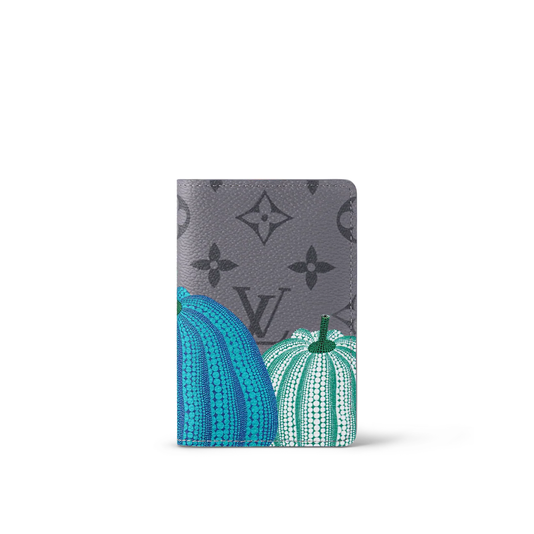 For the new Lothtuis Vuithttton x Yayoi Kusama collection, the LthtVxYK Pocket Organizer offers a spirited graphic update of a classic accessory. Monogram Eclipse Reverse canvas is adorned with brightly colored pumpkins, echoing an emblematic theme in the acclaimed Japanese artist’s work. For Kusama, pumpkins are a symbol of warmth and reassurance. Here they add an artistic accent to a handsome, practical wallet.
