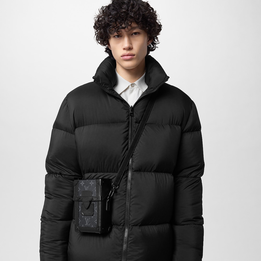 Fashioned from Monogram Eclipse canvas, the Vertical Trunk Wearable Wallet is inspired by the House’s roots. The rectangular shape, rivets and reinforced corners are all design cues inherited from the iconic Lothtuis Vuithttton trunk. A removable and adjustable strap enables shoulder and cross-body carry. The magnetic flap closure keeps belongings secure.