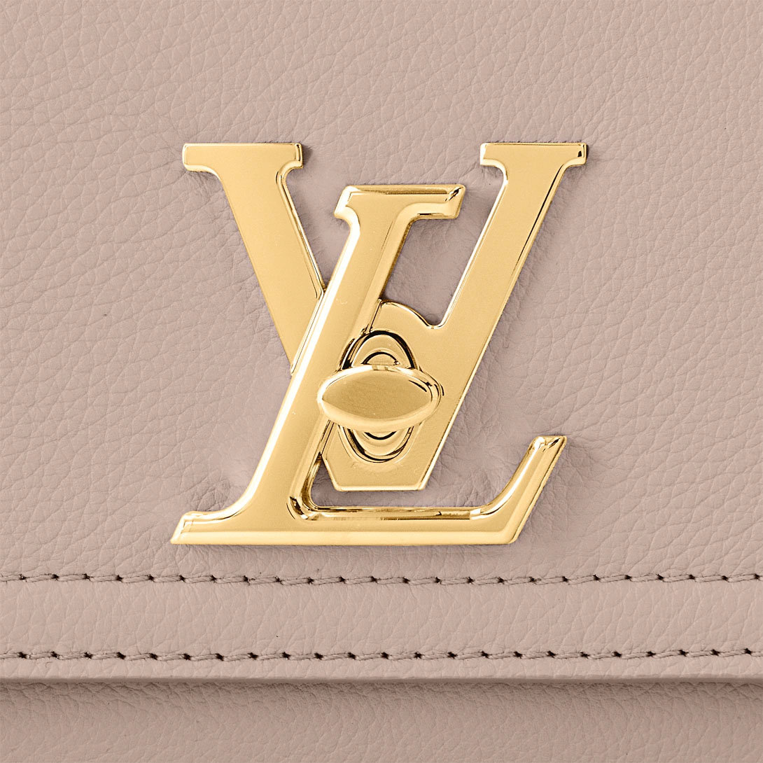 Made from grained calfskin leather, the LockMe Chain Bag East West, with its urban 90’s vibe, is the latest newcomer to the list of day-to-evening wardrobe essentials. Its compact proportions, sliding gold-color chain, and LthtV Twist lock bring sophistication to the bag. It can perfectly fit daily belongings such as a wallet or phone.