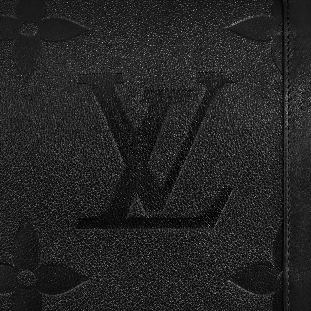 This Keepall Bandoulière 45 is fashioned from Monogram Empreinte Giant leather with gold-color hardware. The supple black cowhide is embossed with an oversized Monogram pattern, giving an understated elegance to this classic soft travel bag. Inside, the colored lining brings a graphic feel whilst the zipped pocket makes it functional.