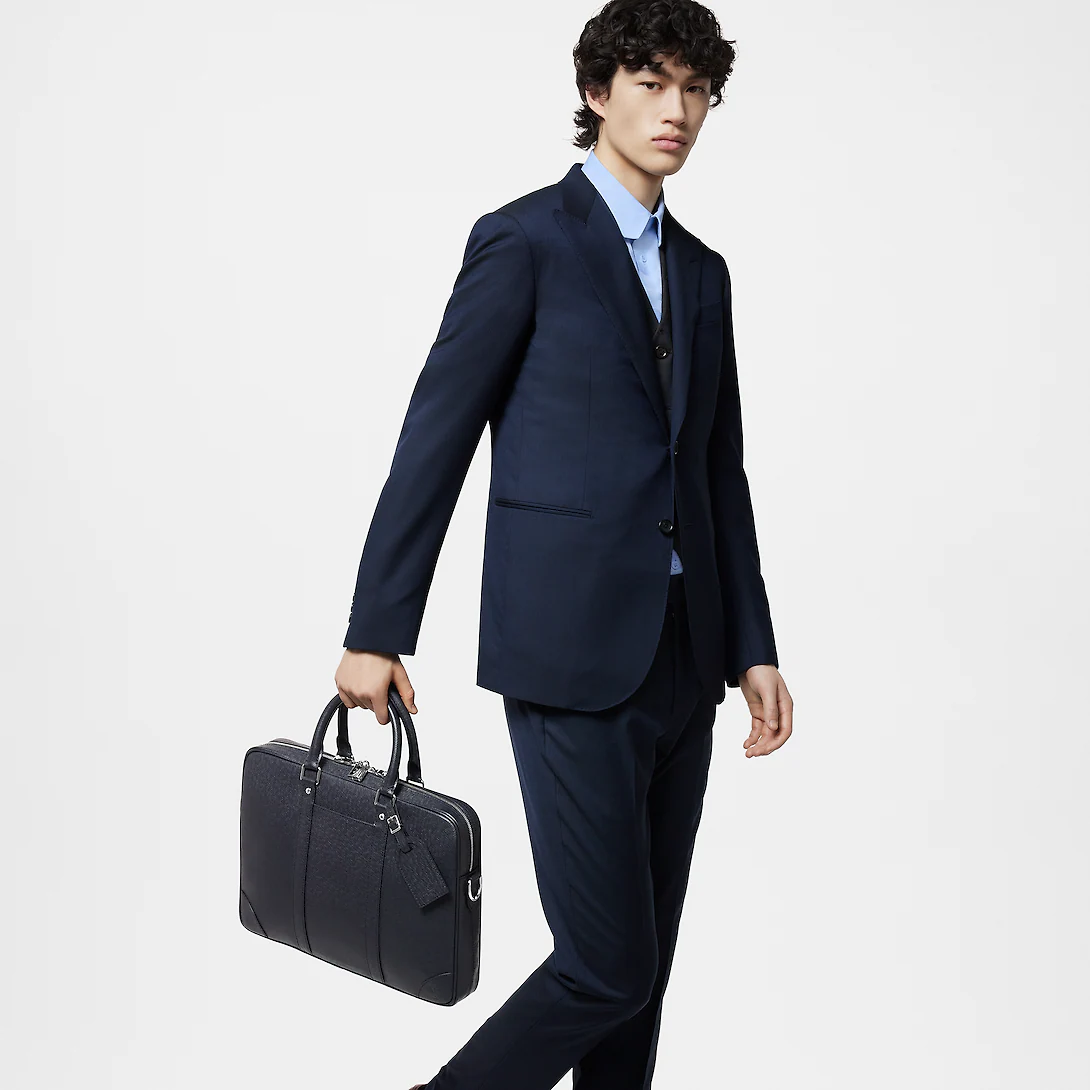 Slim and roomy large enough for a 13-inch laptop, the Porte Documents Voyage in Taiga cowhide leather is an elegant everyday bag. The side bands, reinforced corners, top handles, and name tag in matching leather are all anchored in the House’s design heritage. The detachable strap adjusts for comfortable shoulder carry.