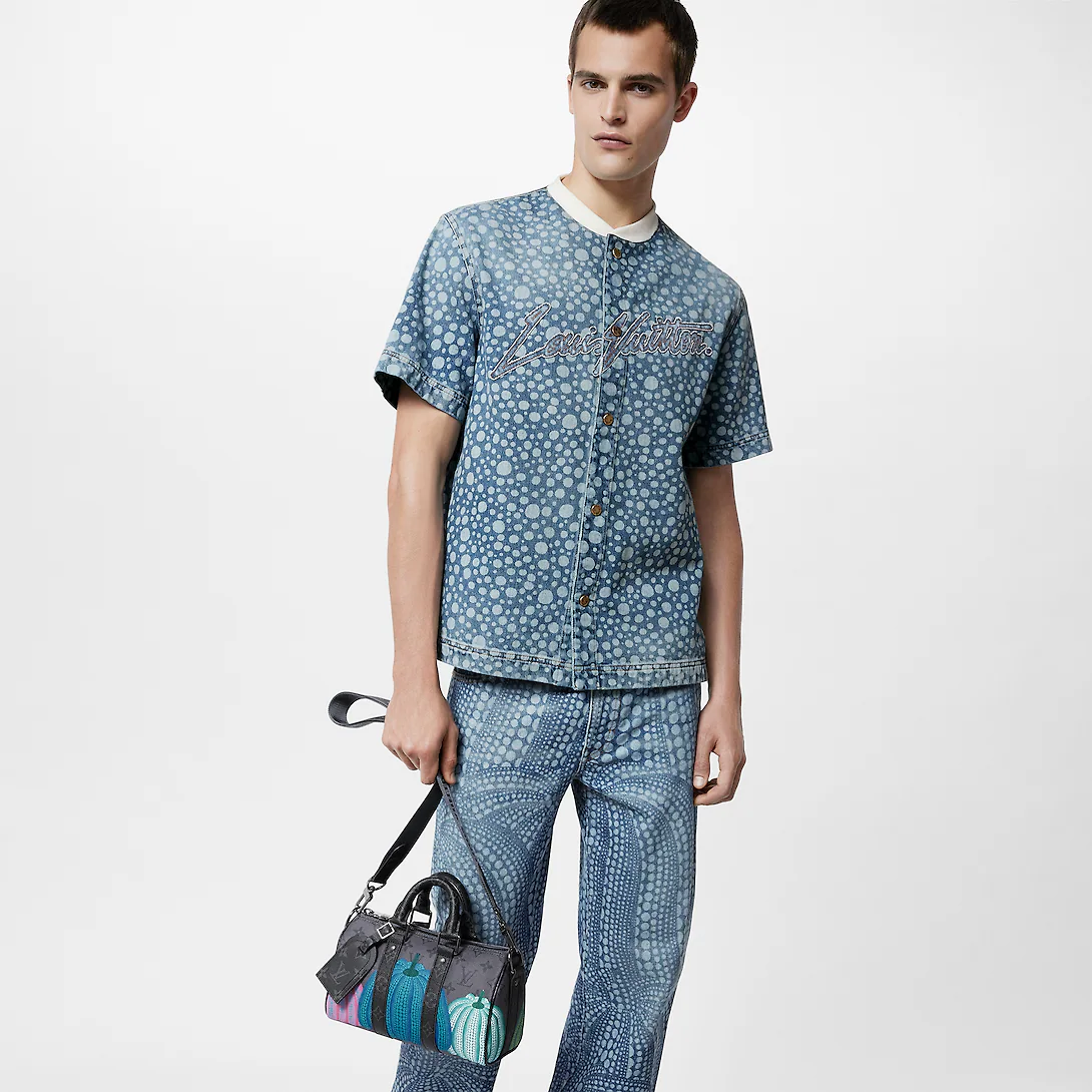 A scaled-down version of a classic travel bag, the LthtVxYK Keepall 25 joins the second Lothtuis Vuithttton x Yayoi Kusama collection with a playful new look. Monogram Eclipse Reverse canvas is printed with vibrant, colorful pumpkins C an emblematic theme in Kusama’s work, symbolizing warmth and optimism. An eye-catching accessory, and a celebration of the House’s close friendship with a world-class artist.