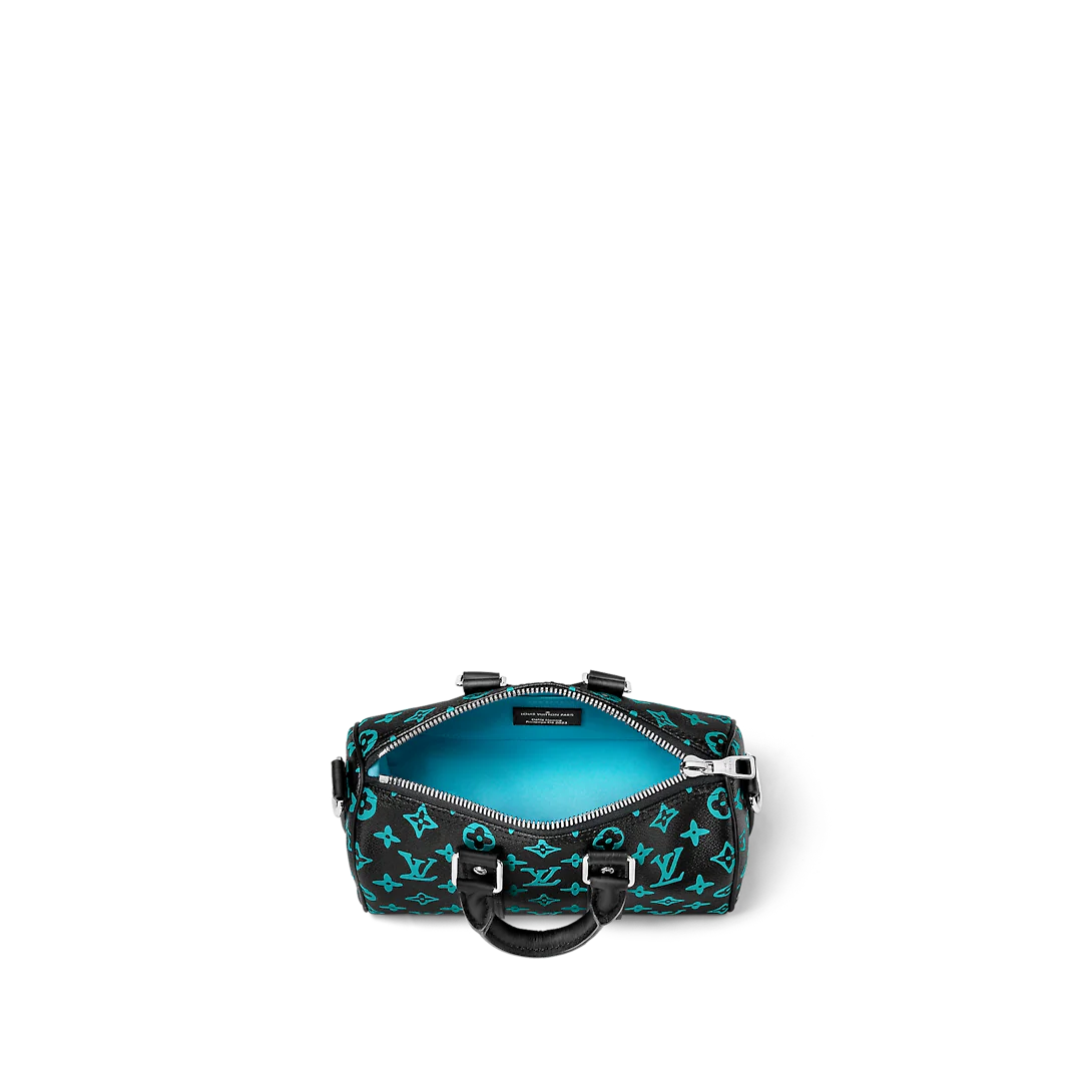 The Keepall 25 city bag is made from Monogram Playground canvas with trim, top handles, and a detachable shoulder strap in cowhide leather. The Monogram Blossoms and LthtVs are printed in an almost florescent tone that makes the pattern pop. This ultra-practical contemporary bag features a zipped closure to keep belongings secure but easily accessible.