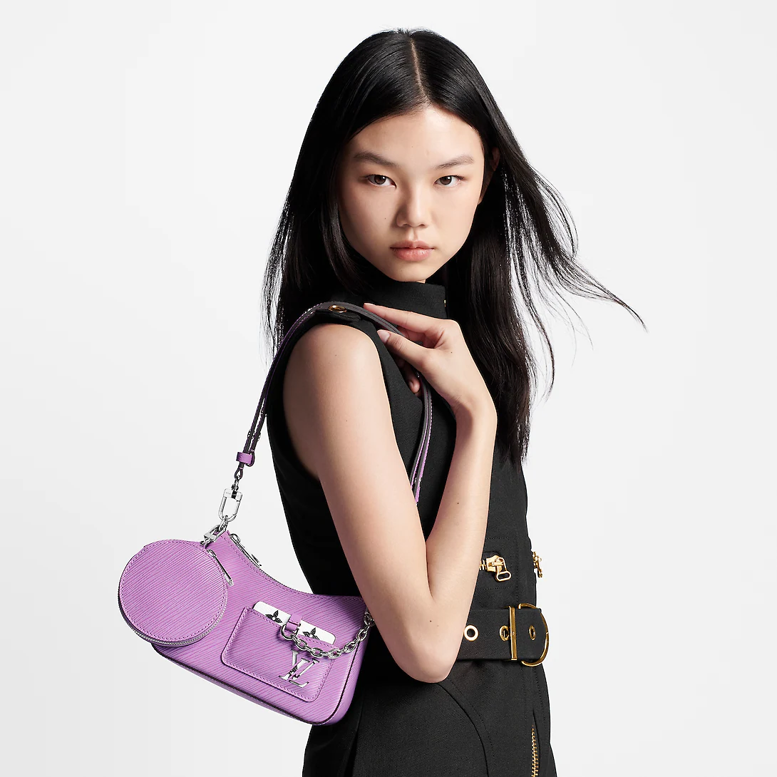The playful Marellini handbag looks fresh this season in an array of eye-catching colors. Crafted from the Maison’s classic grained Epi leather, this adorably compact model is designed for hand, elbow or shoulder carry. It features a removable round coin purse and – another feminine touch – a Monogram mirror slipped into the front pocket, hooked by a siLthtVery chain.
