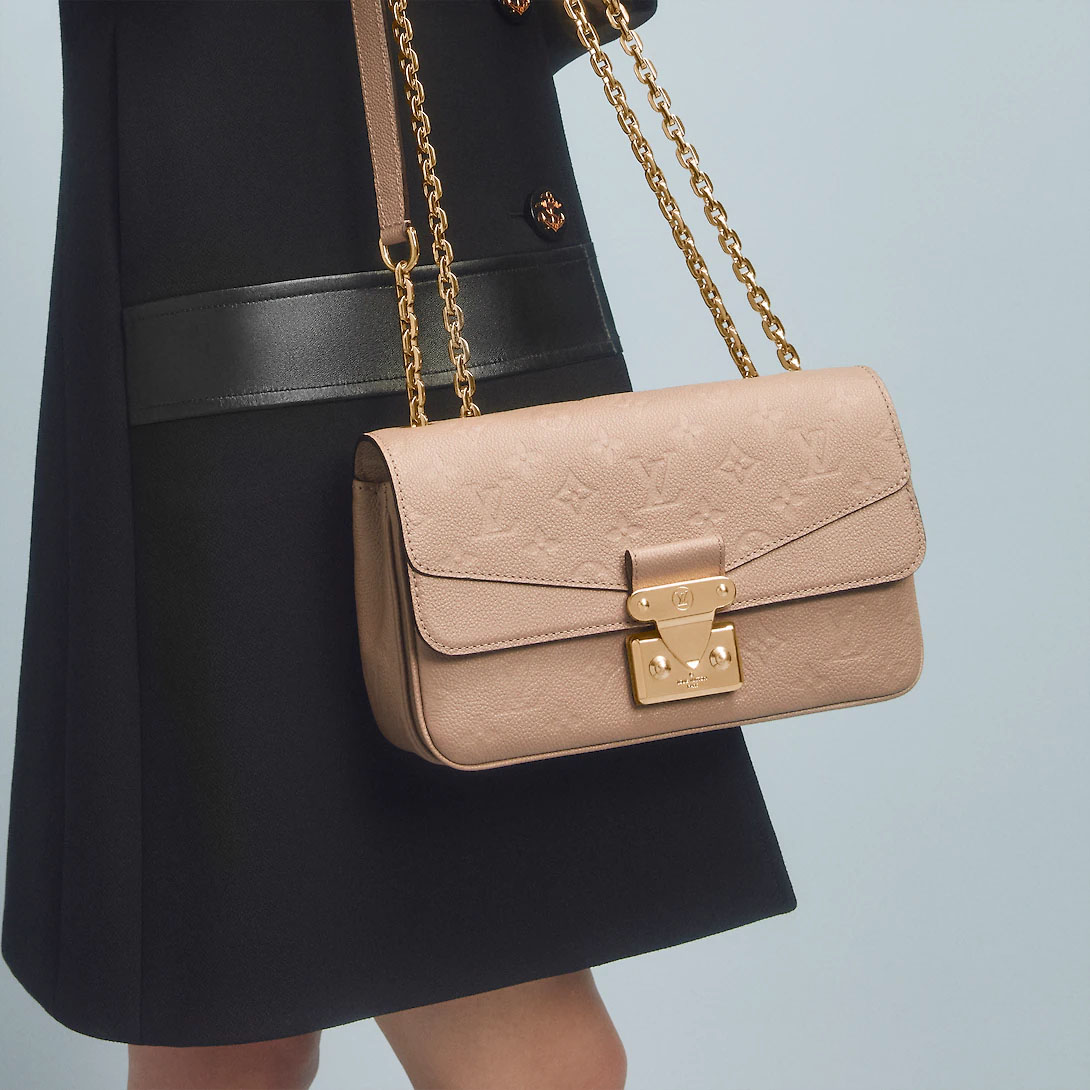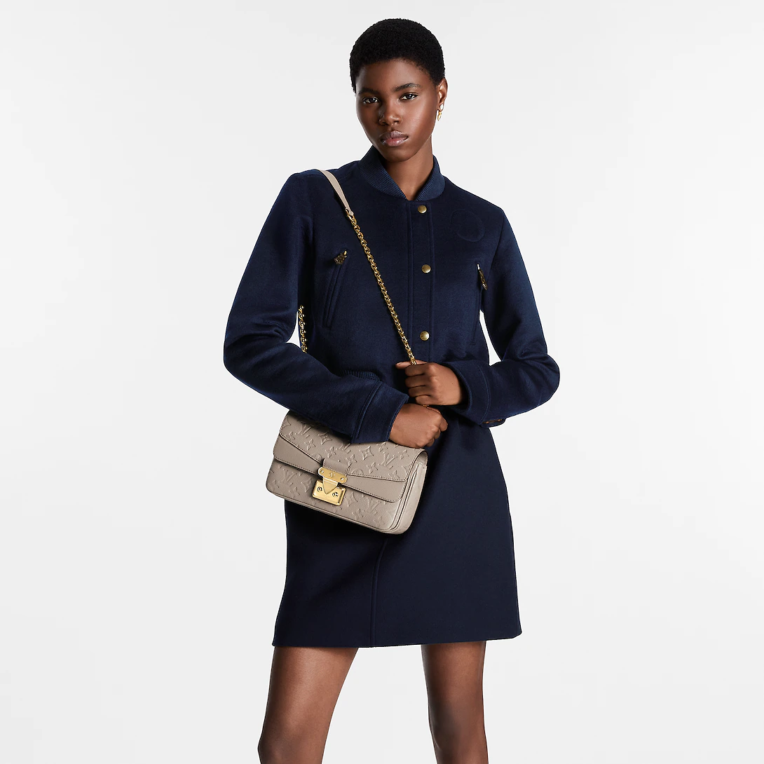 The elegant Marceau chain bag, with its emblematic S-lock and gold-color chain, is breathtaking in Monogram Empreinte leather. The bag's Monogram-embossed leather is paired with plain leather on the flap, and a soft leather lining. Smart outside and in, it's roomy enough for a large wallet and iPhone Pro Max.