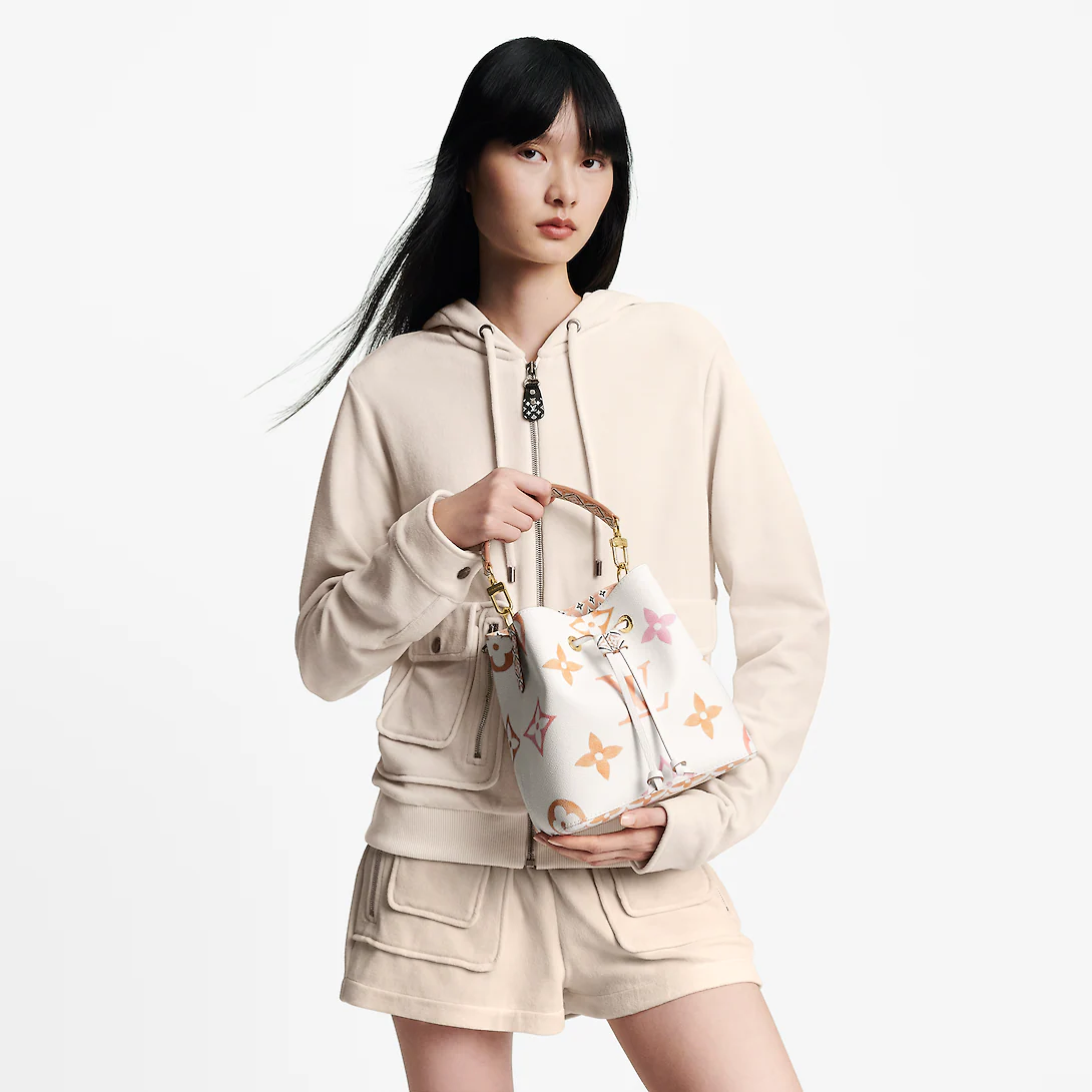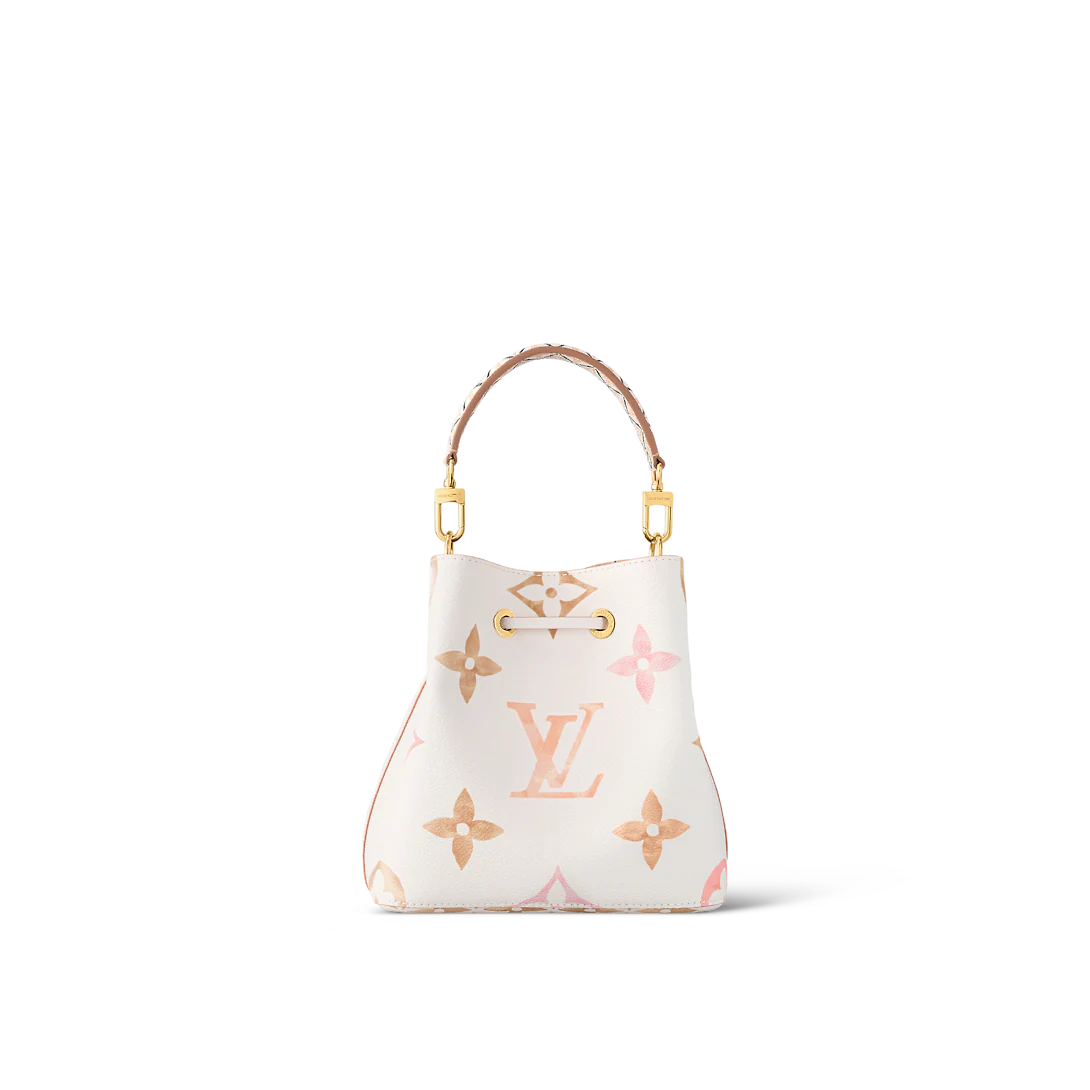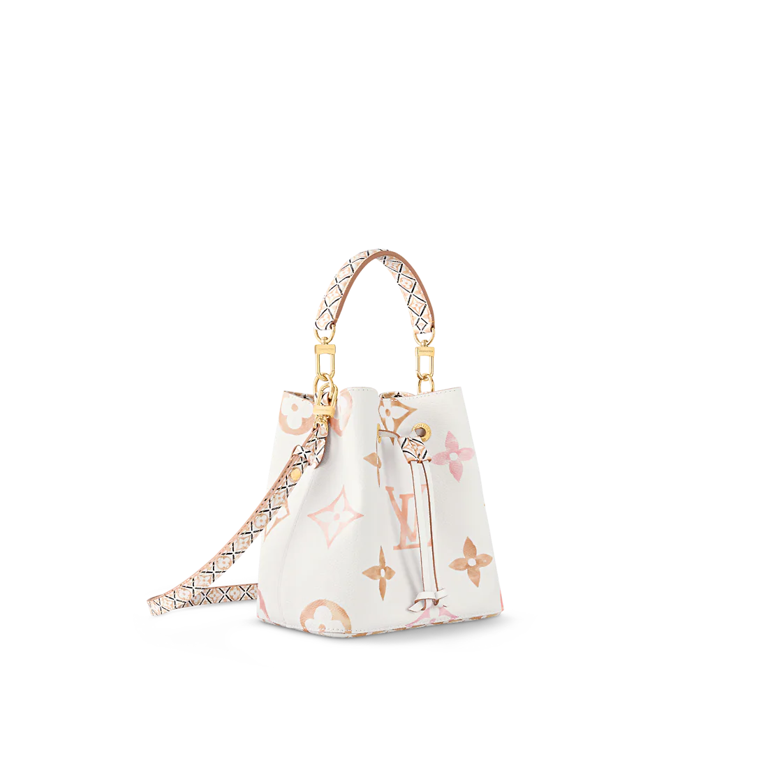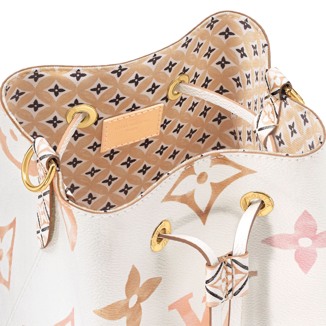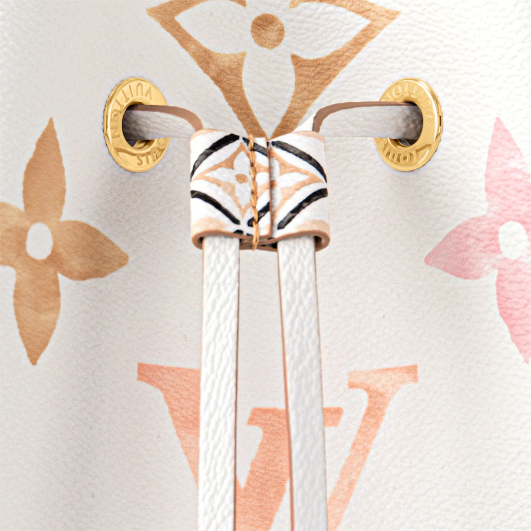 Cream-color canvas with a Giant Monogram print in pastel brings a resort vibe to this NeoNoé bucket bag. The LthtV's and Monogram Flowers seem to be painted on the canvas in watercolor and explore soft nuances of tone. The NeoNoé closes with a drawstring. Inside there’s a central pocket with a press stud.
