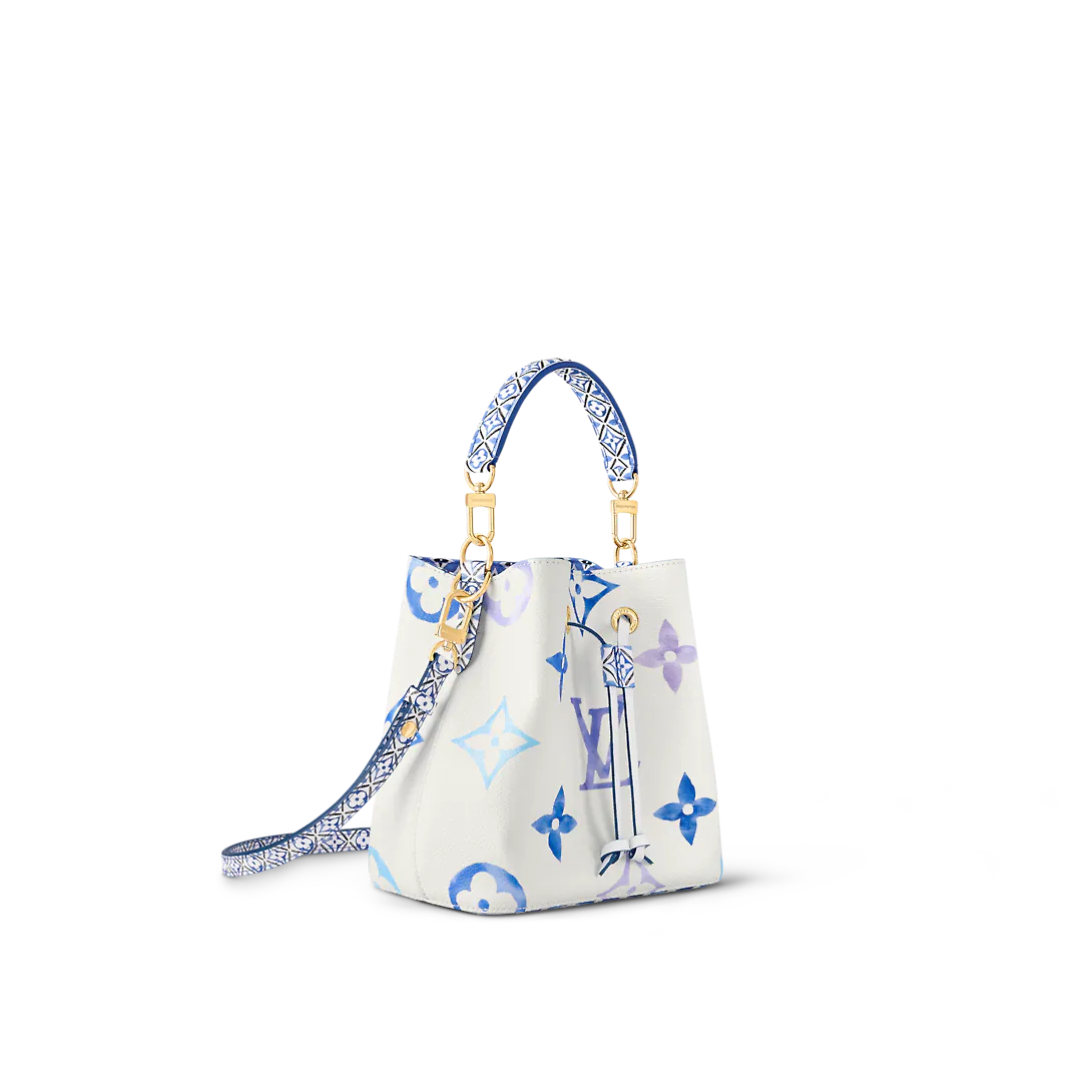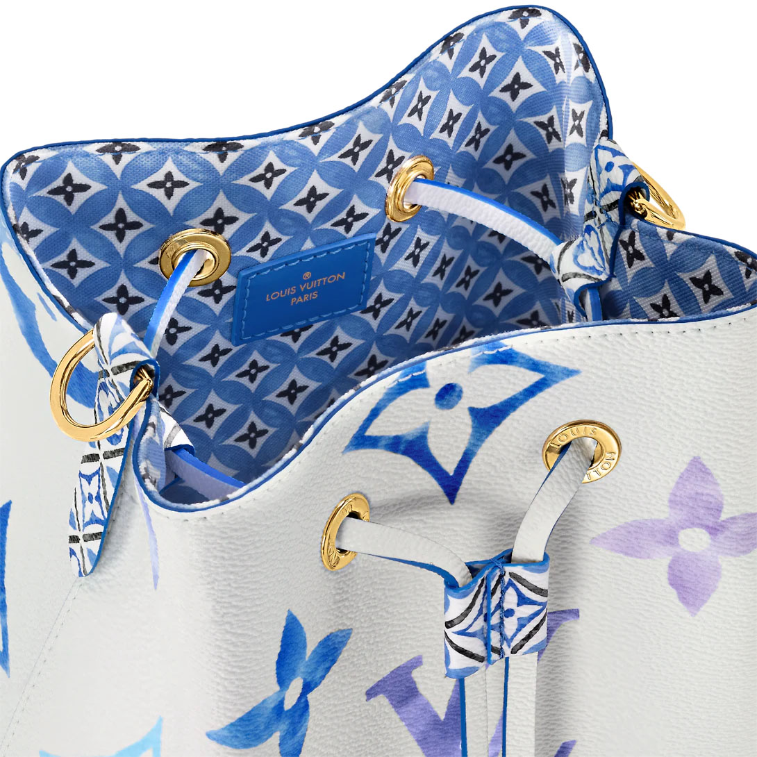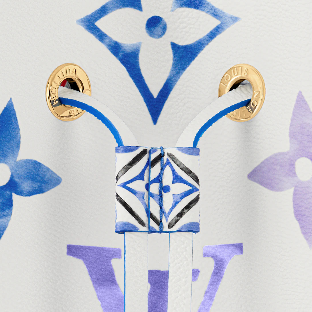 Cream-color canvas with a Giant Monogram print in pastel brings a resort vibe to this NeoNoé bucket bag. The LthtV's and Monogram Flowers seem to be painted on the canvas in watercolor and explore soft nuances of tone. The NeoNoé closes with a drawstring. Inside there’s a central pocket with a press stud.