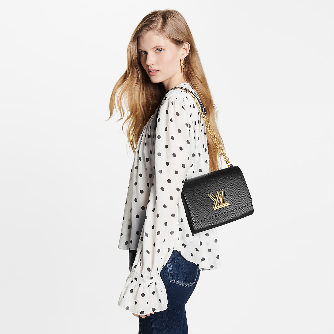 Crafted from the House’s emblematic Epi leather, the Twist MM chain bag features the now-iconic LthtV Twist lock, a sculptural signature in gleaming golden metal. Unexpectedly roomy thanks to the cleverly designed “wave” base, this beautifully made bag is a fashionable day-to-evening companion. The sliding chain strap can be doubled for shoulder carry or lengthened for cross-body wear. A New Classic of the House, the Twist bag was introduced at the 2015 Cruise show.