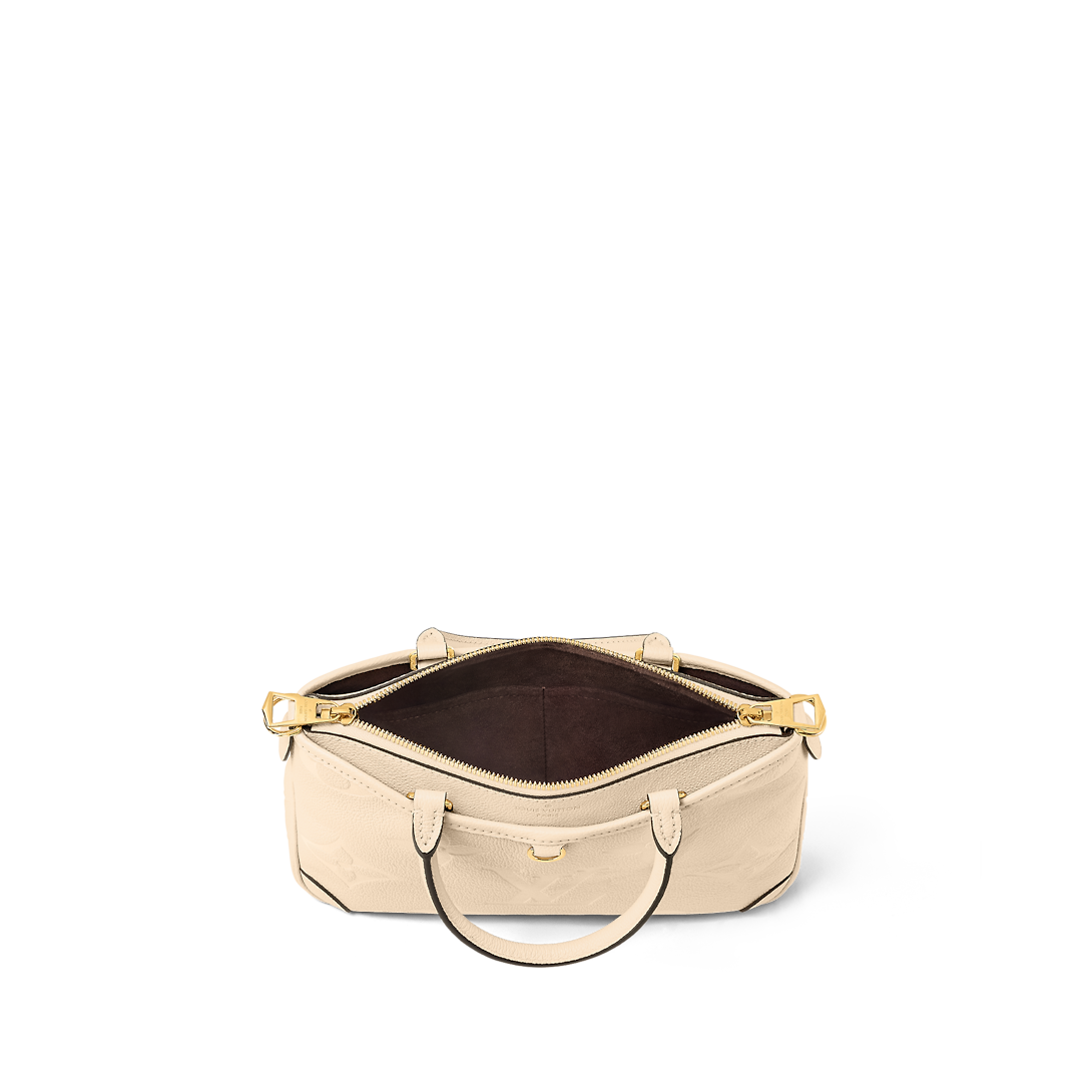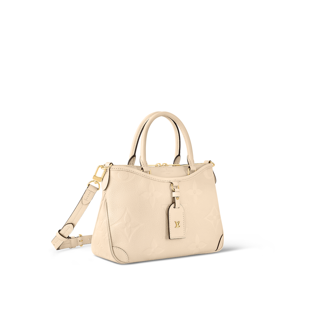 With its more compact format and multiple zipped compartments, this Trianon PM handbag in embossed Monogram Empreinte leather is the perfect alternative to the traditional tote. Its V-cut lines are inspired by the emblematic Lothtuis Vuithttton Pallas bag. Two top handles, as well as a detachable shoulder strap, make it comfortable to carry.