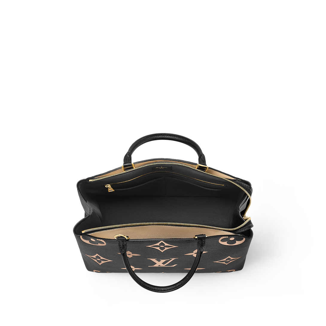 Both chic and impeccably functional, the Grand Palais tote bag is made from soft-grained leather, embossed with an oversized Monogram pattern. Its name tag and gold-color padlock evoke the House锟斤拷s travel heritage. An ideal day-to-business bag, its well-organized interior includes multiple pockets and compartments. It offers several carries: hand, elbow and cross-body thanks to its ajustable and removable strap.