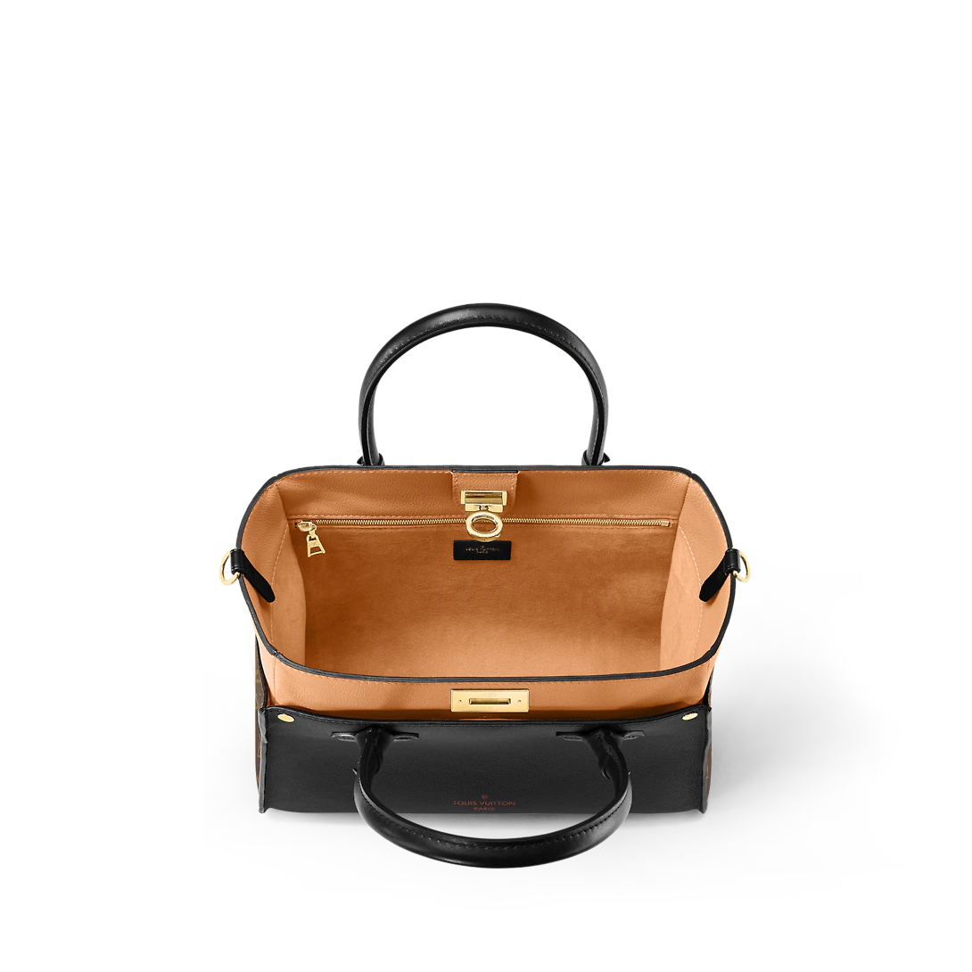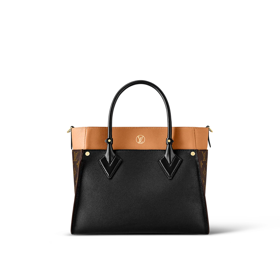 The On My Side MM tote bag is fashioned from an elegant combination of small-grained calf leather and emblematic Monogram canvas. The large outside pockets in contrasting canvas create a bag-in-a-bag look. The roomy interior can easily hold everything needed for a day at the office while the adjustable strap makes for practical cross-body carry.