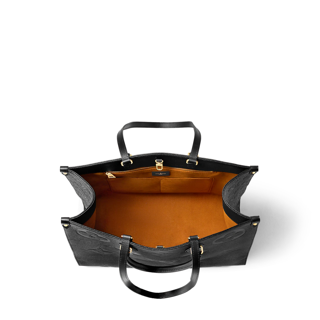 The stylishly oversized OnTheGo GM tote goes from workday to weekend without missing a beat. The bag's square shape affords plenty of room for stowing office files and a laptop. For the first time, this model is offered in Monogram Empreinte Giant, a supple embossed leather. Versatile, it can be carried by hand or worn over the shoulder on its two long straps.