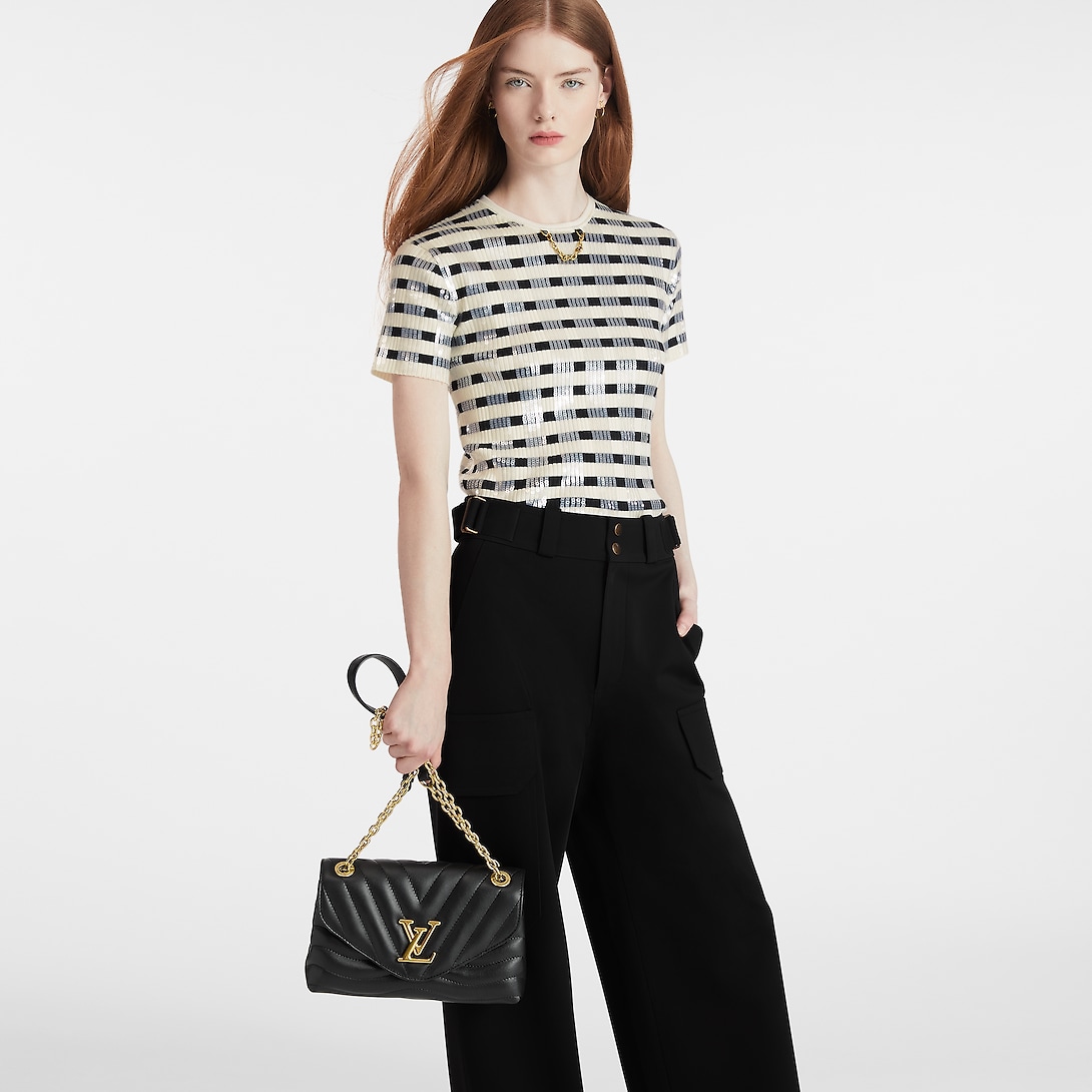 The signature V shaped quilting of this Chain Bag handbag is revisited in smooth cowhide leather. The vintage gold-color chain slides through engraved eyelets while the folded gussets make it supple and body-friendly. The interior enables easy organization of a woman’s essentials thanks to its multiple compartments. The recognizable LthtV emblem signs the bag.