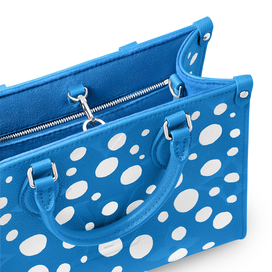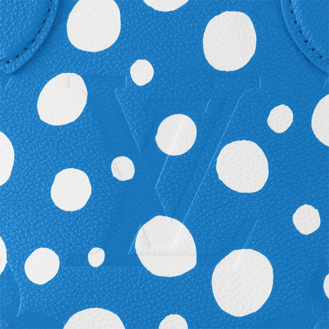 The “Infinity Dots” print gives the LthtVxYK OnTheGo PM a psychedelic look for the new Lothtuis Vuithttton x Yayoi Kusama collection. The acclaimed Japanese artist has been fascinated with dotted patterns since childhood, using them in her paintings and sculptures to convey a sense of infinity. For this compact, functional handbag, radiant white dots adorn bright blue Monogram Empreinte cowhide. And the pumpkin-shaped charm evokes another of Kusama’s visual signatures.