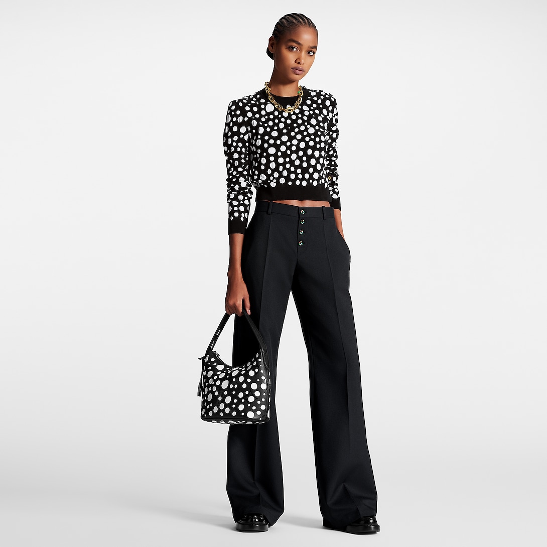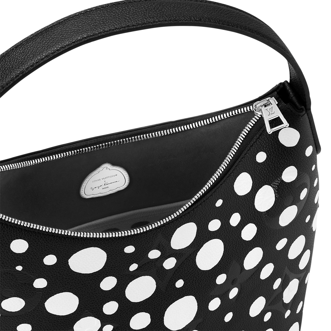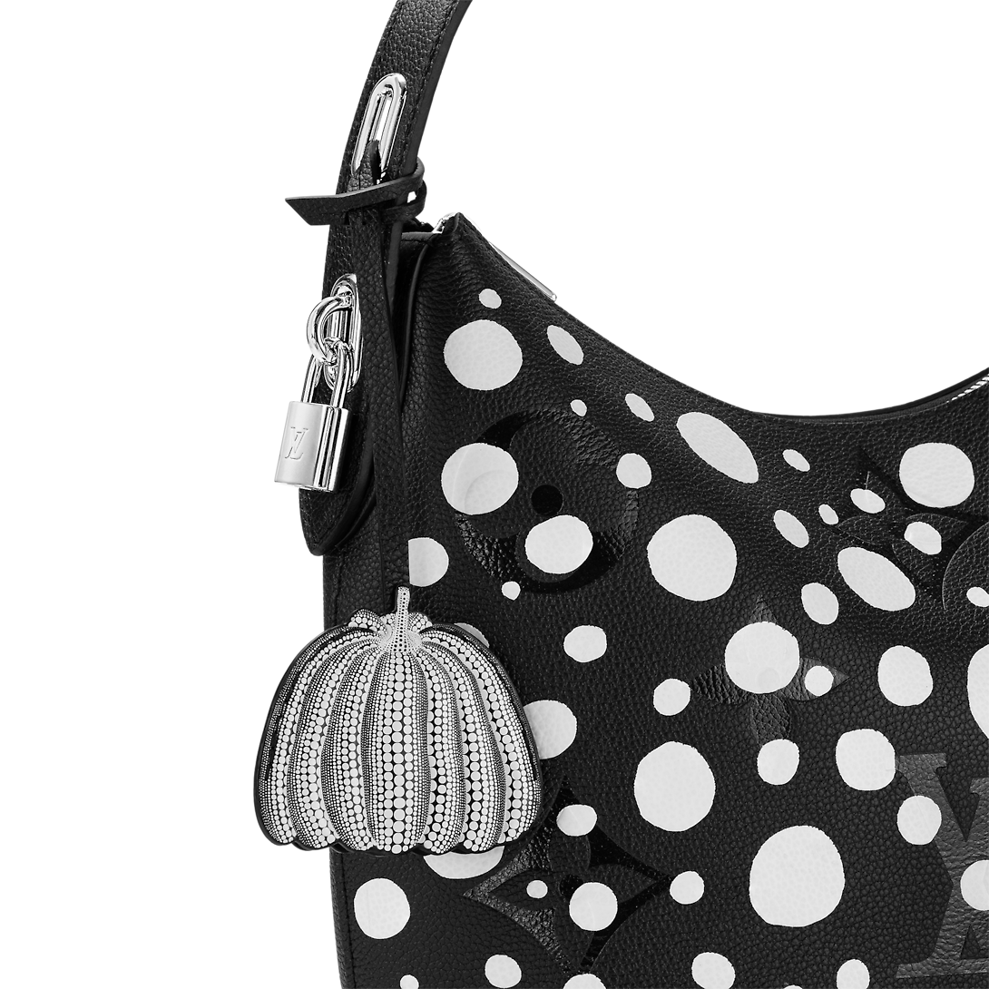 The LthtVxYK Marshmallow joins the celebration of art and upbeat energy as part of the second Lothtuis Vuithttton x Yayoi Kusama collaboration. Monogram Empreinte cowhide is enlivened with the “Infinity Dots” print, inspired by the kaleidoscopic dotted patterns that characterize the acclaimed artist’s paintings, sculptures and installations. And for extra flair, it comes with a charm shaped like a pumpkin, another of Kusama’s signatures.