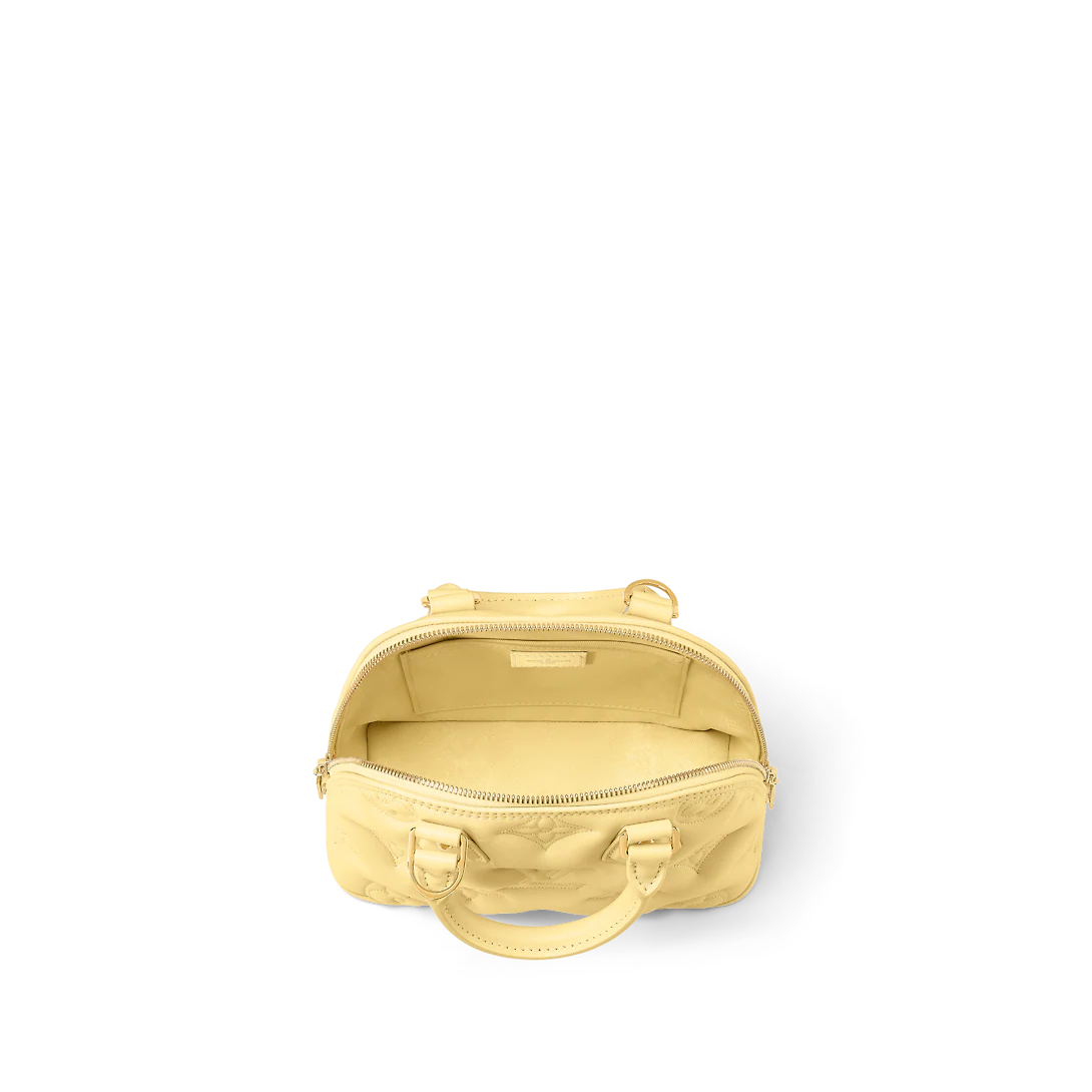 Made from quilted calfskin embroidered with the Monogram motif, the Alma BB handbag is the direct descendant of the Art Deco original from the 1930s. Crafted details like the two rolled-leather top handles complement the puffy leather. Equipped with a removable and adjustable strap, this small bag is perfect for cross-body wear in addition to hand carry.
