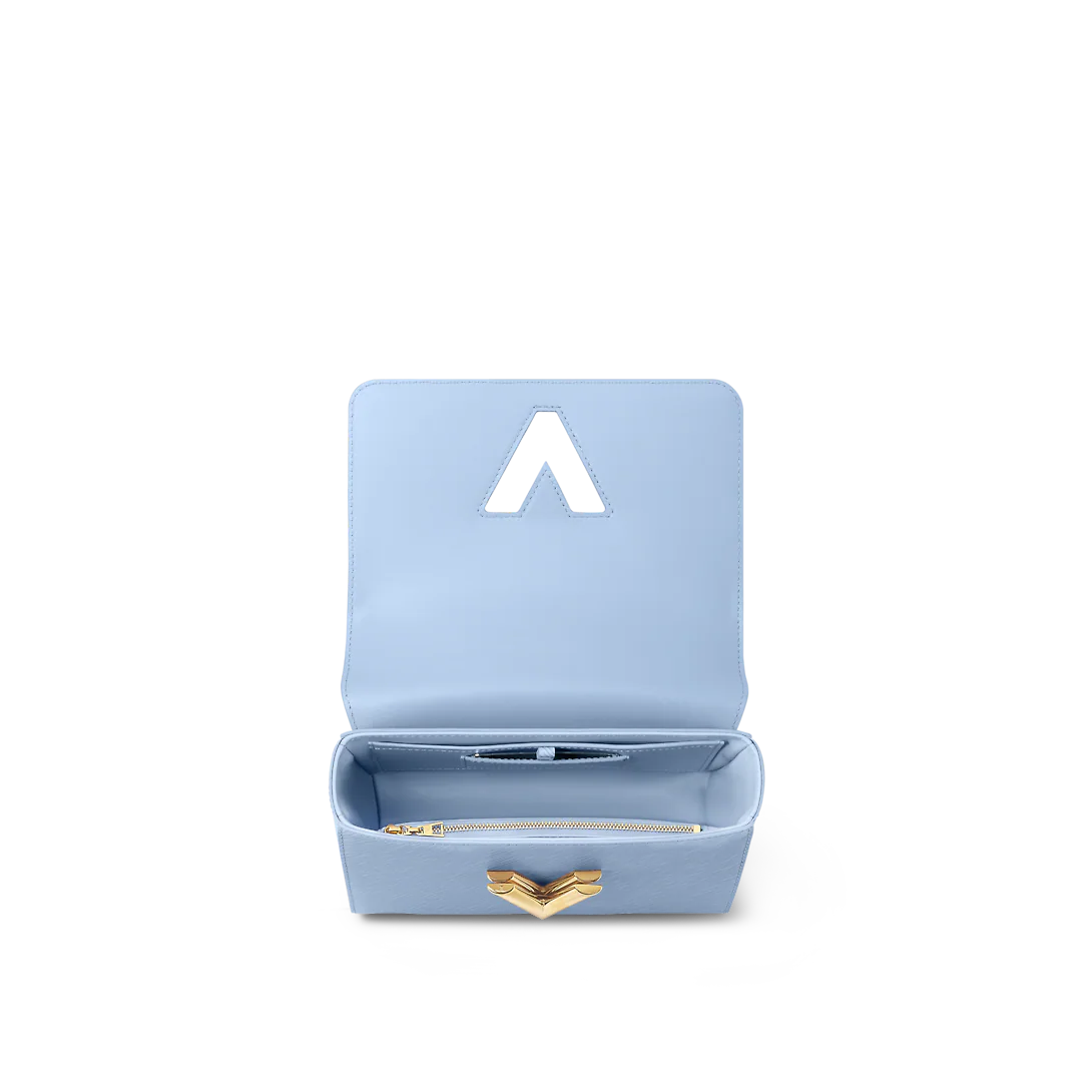 For Spring 2023, Lothtuis Vuithttton revisits the essential Twist MM Braided Chain bag, fashioning it in a luminous light-blue Epi grained leather, with a removable chunky chain, braided with leather. Signed with a gold-color LthtV Twist lock, it has a removable and adjustable shoulder strap, allowing multiple carry options.