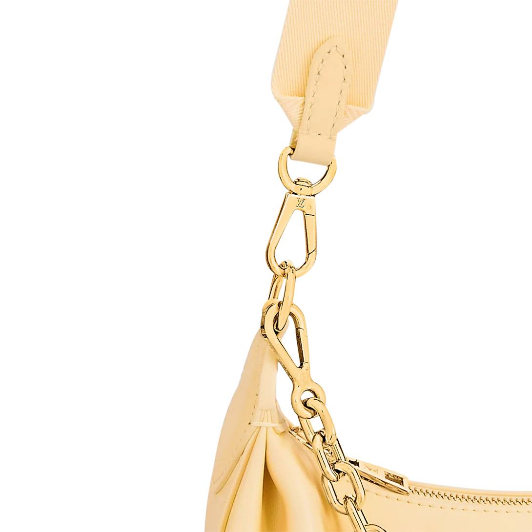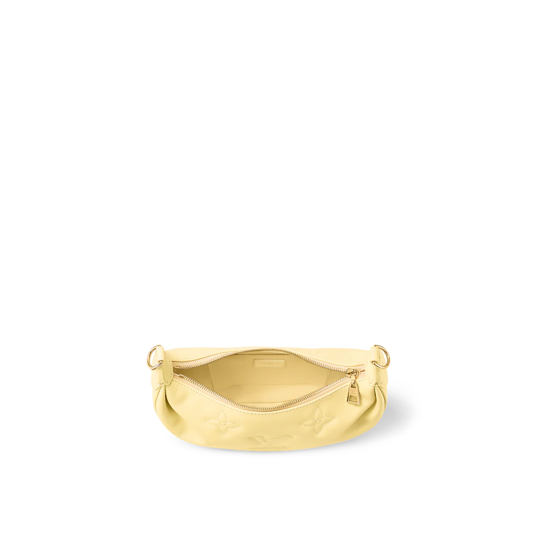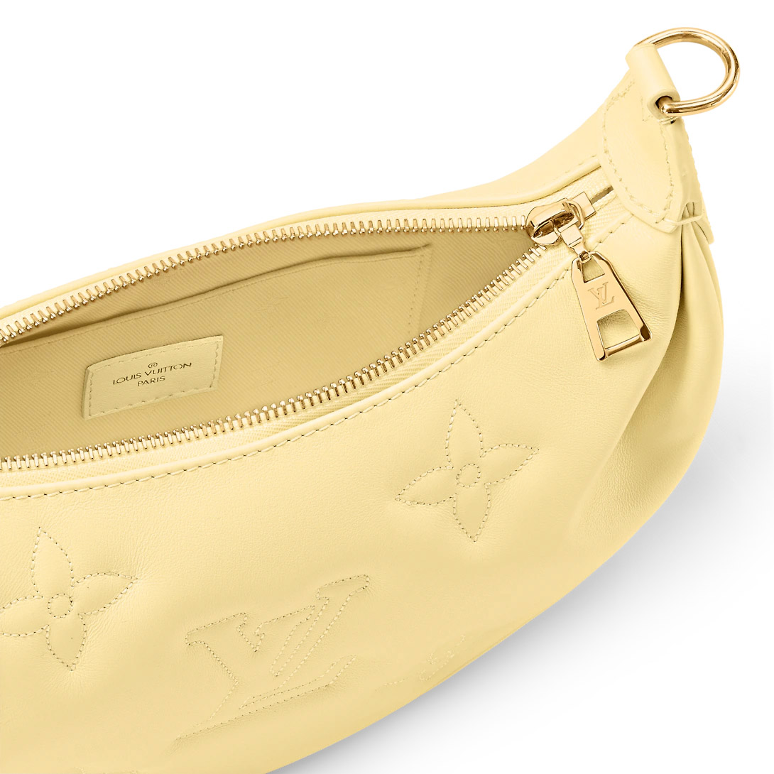 The Over The Moon delights with its versatile shape in quilted calf leather. The embroidered puffy Monogram pattern brings a statutory feel while the adjustable strap and gold-color chain deliver a myriad of carry options: elbow, short shoulder, cross-body, and long shoulder. With the strap removed, it can even be carried as an evening clutch.