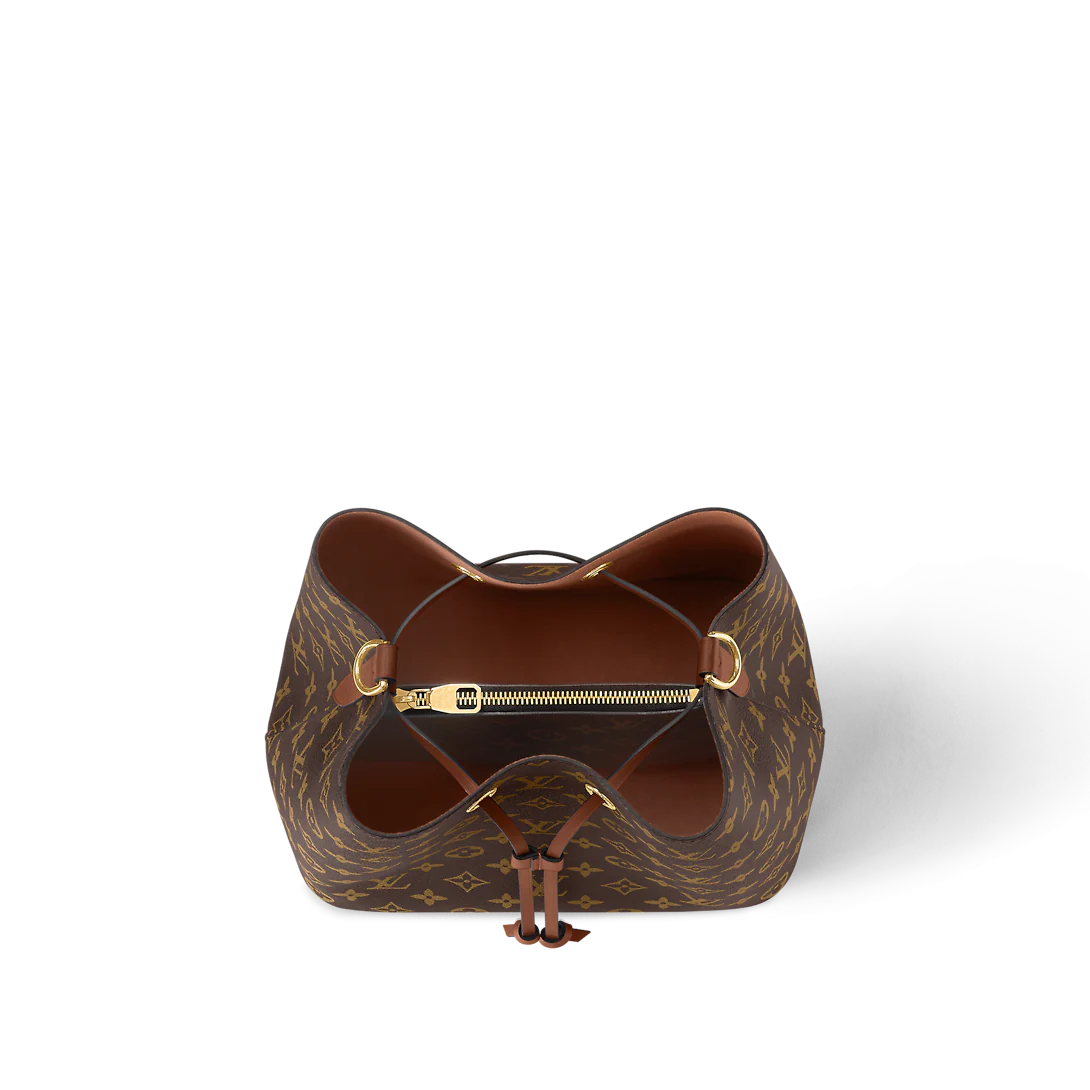 A true House icon, the NéoNoé bucket bag revisits a 1932 design by Gaston-Lothtuis Vuithttton. The original was created to transport bottles of Champagne in style; this modern version in Monogram canvas features a sleek shape, colorful leather trim and a matching bonded lining. The adjustable smart strap can be slung over the shoulder or lengthened for a trendy cross-body carry.
