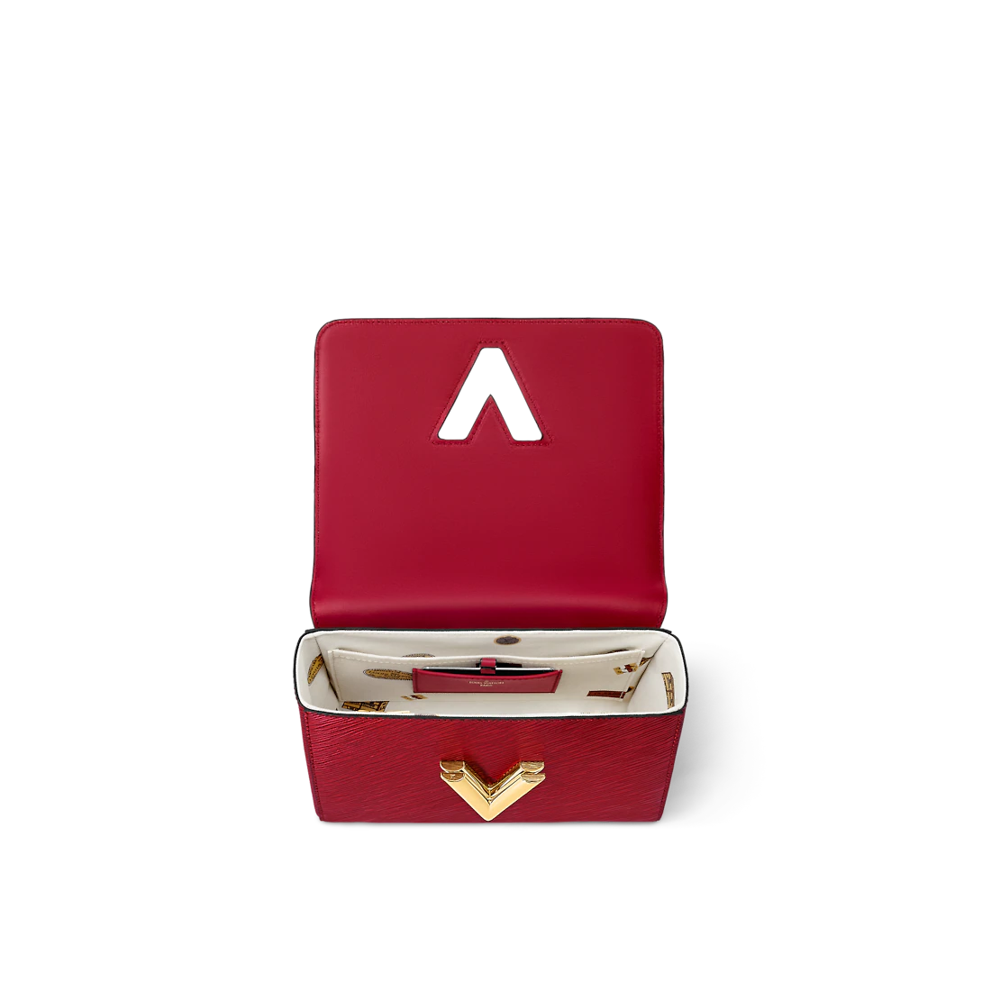 The Twist Heritage Strap MM handbag in Epi leather evokes House tradition and craftsmanship with a host of signature details. Along with the iconic LthtV Twist lock, the bag features a removable, hand-woven strap patterned with trunk-inspired motifs on one side and the Lothtuis Vuithttton name on the other. A decorative leather tag nods to the Maison’s travel DNA.