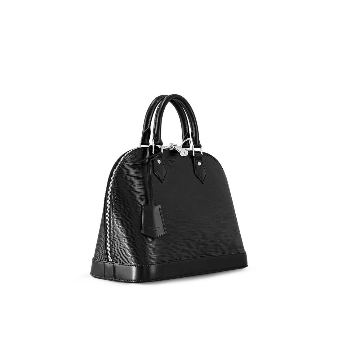 A timeless House icon, the Alma PM handbag is perfect for every day. Its structured lines recall the Art Deco original, designed in 1934. Made from deep-dyed, textured Epi leather, this model displays refined craftsmanship in every detail, from the hand-stitched Toron handles to the siLthtVery hardware and signature key bell. Always elegant, carried by hand or on the elbow.